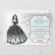 Invitación Chica Quinceañera de Negro & Azul Turquesa