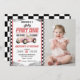 Invitación a la foto del primer Fiesta de cumpleaños del Chica de un coche de carrera rápido