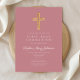Invitación Chica religioso de la Cruz Rosa Moderna Primera Co