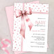 Invite a sus huéspedes a una moda y una celebración elegante con nuestra Invitación Baby Shower Watercolor Pink Bow. Con una suave acuarela de color rosa, atada con una delicada cinta y complementada con divertidos puntos de polka rosa, este diseño irradia un encanto moderno y elegante, perfecto para una ducha de bebé. La refinada tipografía del guión y el diseño limpio y minimalista hacen de esta invitación el lugar ideal para los que buscan un tema sofisticado y fresco de la ducha de bebé. Esta invitación al personalizable te permite añadir todos tus detalles de tu evento, lo que lo convierte en la elección perfecta para tu ducha de bebé con arco rosado. El diseño lujoso de acuarelas y los acentos suaves de color rosa crearán emoción y anticipación mientras se preparan para dar la bienvenida a su bebé. Haz que tu ducha de bebé sea inolvidable con esta invitación a la ducha de bebé color rosa de la acuarela - una manera elegante y refinada de invitar a tus seres queridos a celebrar la llegada de tu pequeña niña!