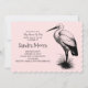 Una vieja cigüeña kraft para bebés ducha por invitación del correo en un original y peculiar tipo de letra. Para una celebración por correo con ducha de bebé de larga distancia. Envíe por correo su tarjeta y regalos a la madre que espera cuando no pueda reunirse por largas distancias. Personalizar con sus datos de correo.