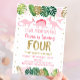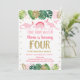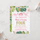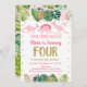 Invitación Chica Rosa Dinosaurio Cuarto Cumpleaños