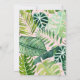 Esta encantadora invitación para el cumpleaños incluye hojas de acuarela tropical con adornos de hojas de purpurina dorado y dinosaurios rosas.
