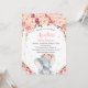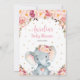 Invitación Chica Rubor Floral Rosa Cute Elephant Baby Shower