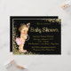 Invitación Chica Shower Rosa Negro Oro Holográfico Brillante