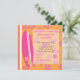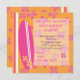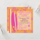 Flores frescas de naranja y rosa adornan este perfecto diseño tropical de tablas de surf, una excelente elección para el chica de cumpleaños, un fiesta de surf, una fiesta de soltera o un cambio de verano.