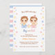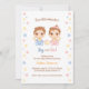 Bebés personalizados, niños y chicas, con toallitas azules y rosas y bibs amarillos con sondas que hacen juego. La encantadora y original invitación a la ducha de bebé.