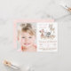 Invitación a la fiesta de primer cumpleaños de chica con adorables animales de color agua y flechas. Esta invitación a la fiesta de cumpleaños de animales de bosque se personaliza fácilmente para tu evento simplemente añadiendo tu foto y detalles.