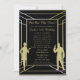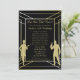 ¡Ponte el ritz! Chica del flapper de arte deco de los años 20 y fiesta de gángsters glitz y glam, invitaciones de oro y negro.