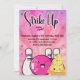 Invitación Chicas Bowling Neon Rosa Tinta Fiesta