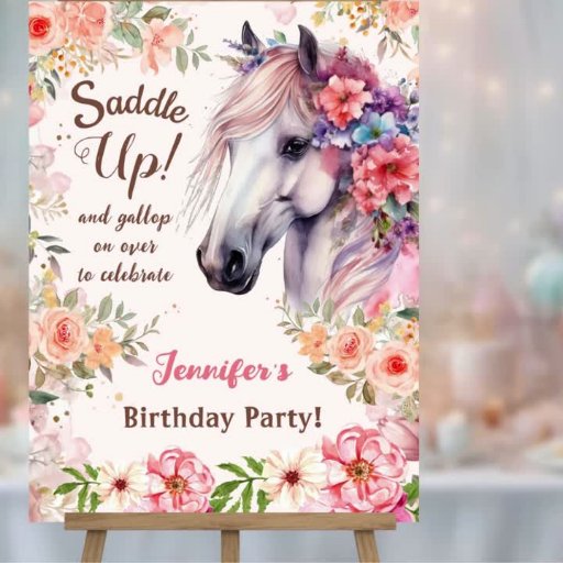 Ensillar con nuestros "Chicas Caballos 1° cumpleaños Flores rosas! ¡🎉 de invitación 🎂 arrancar la celebración con estilo con este adorable tema de la cowgirl! ¡Agarra la tuya ahora y deja que el fiesta del pony empiece! 🎉 🎂