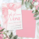 Invitación de cumpleaños número 1 "Girls Just Wanna Be ONE". Este diseño adorable presenta un lazo de acuarela juguetón con un acento de marco de cinta en la parte superior y en el lado izquierdo. Detrás del lazo, confeti falso de purpurina rosa está esparcido alrededor de los bordes superiores y izquierdos, agregando un toque divertido y brillante mientras mantiene el aspecto dulce y elegante.