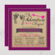 Chicas Boho invitaciones a la ducha de bebé con pies y flechas para bebé sobre un papel Kraft y fondo de chapa de búfalo rosado caliente. Esta aventura de Boho comienza la invitación a la ducha de bebé se personaliza fácilmente para tu evento simplemente añadiendo tus detalles.