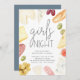 Invite a los amigos a pasar la noche (o dentro) con estas invitaciones informales a la moda. El diseño incluye detalles de la celebración en letras modernas, rodeadas de ilustraciones de quesos, carnes, pan y fruta.