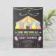 Sorprenda a sus huéspedes con esta encantadora invitación a la ducha de bebé con temática de carnaval, que incluye una tienda de circo y lienzos de algodón rosa con tipografía pastel sobre fondo de pizarra. Simplemente agregue los detalles de su evento en esta plantilla fácil de usar para convertirla en una invitación única. Girar la tarjeta para mostrar un patrón de rayas rosas y blancas en la parte posterior de la tarjeta.