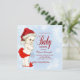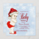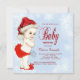 Adorable Santa hat bebé chicas rojos y azules Navidades de copos de nieve invitan a la ducha de bebé. Esta hermosa invitación a la ducha para bebé con copos de nieve se personaliza fácilmente para tu evento añadiendo tus detalles en el estilo de letra y color, y la redacción de tu elección.