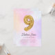 ¡Mágico! Nuestra adorable invitación a los dulces de algodón color agua incluye un globo de Relieve metalizado dorado #9 pintado a mano con un balance de tipografía cursiva y sans serif. Este diseño es completamente personalizable y es perfecto para tu celebración de noveno cumpleaños de tus niñas.