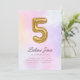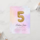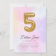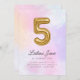 ¡Mágico! Nuestra adorable invitación a los dulces de algodón color agua tiene un globo de Relieve metalizado dorado #5 pintado a mano con un balance de tipografía cursiva y sans serif. Este diseño es completamente personalizable y es perfecto para tu celebración de quinto cumpleaños de tus niñas.