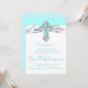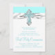 Invitación de la Primera Comunión azul verde azulada del chica con elegante cinta de cruz de diamante verde azulado azul y plata sobre un hermoso fondo verde azulado azul y blanco. Puede personalizar fácilmente esta invitación de la Primera Comunión azul verde azulada de bonito agregando los detalles del evento en el tamaño y color de la fuente y en la redacción de su elección.