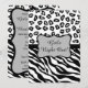 Celebrar un evento o boda especial con un fiesta de la Noche de los Chicas. El diseño combina rayas de cebra negras y blancas con pieles de leopardo para crear un diseño moderno. Un emblema gris ( gris ) delineado en negro se sienta en una tira negra para crear un área de personalización, con el nombre y las palabras "Chicas de noche fuera" que son fáciles de personalizar para un evento diferente. La parte posterior de la invitación incluye campos para toda la información de su fiesta. Puede cambiar y eliminar campos fácilmente según sea necesario. Los colores son blanco, negro y gris. Las pieles de animales salvajes para el diseño gráfico es una de las tendencias artísticas y de diseño más calurosas. Coordinar con otros productos para celebrar con un fiesta elegante.