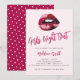 Invitación divertida de la Bachelorette con el Chica Night Out escrito en un moderno tipo de letra de caligrafía de pincel, ilustracion de labios de estilo pop negrita, paleta de color rosa y un divertido patrón de puntos polka en la parte posterior. Personalizable completo de plantillas de texto para que pueda usar esta divertida plantilla de invitación para cualquier otra celebración, como una fiesta de cumpleaños, una ducha de novia o cualquier otra ocasión.