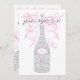 Alegre a la futura Novia con esta botella de champán de estilo bonito, decorada con aves amorosas, uvas y viñas. Las motas rosas de champán hacen de esta carta perfecta para aquellas ocasiones de chicas. Personalizar esta invitación con tu propio texto. Ilustracion original de pj_design.