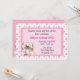 Esta adorable invitación para el primer cumpleaños incluye un adorable cachorro blanco y marrón con fondo de polka punteado rosa y marrón. Se puede personalizar con un nombre y los datos de su fiesta. Algunos gráficos de ScrappinDoodles.com y Pixel Paper Imints en MyGrafico.com.