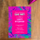 Mi hija y yo creamos este diseño de remolinos geniales en verde azulado brillante, morado, azul y rosa. Agregamos un falso efecto de brillo purpurina. Crea el escenario perfecto para tu increíble fiesta de cumpleaños de fiesta delgado. "Estás invitado a un Fiesta de Slime" está escrito en un guión divertido. Agregue el nombre del niño de cumpleaños en la tipografía de moda. Personalizar fácilmente el texto y agrega la fecha de la fiesta de cumpleaños, la ubicación, RSVP y otros detalles. Esta invitación a la fiesta de cumpleaños tiene un gran arcoiris, una apariencia groovía. El colorido estilo retro ondulado crea un ambiente divertido. Espero que tengas un fabuloso fiesta empezando con este diseño original único. Ver mi colección para otros productos fiestas con este diseño.
