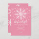 A Little snowflake is on the way design featuring a large white snowflake surrounded by smaller snowflakes set on a pink background. Visit our shop to view our little snowflake collection.