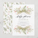 Hermosa acuarela rosa floral y verde invitación a la ducha de bebé con una hoja de fondo floral coordinada.