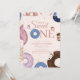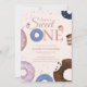 Celebra el primer cumpleaños de tu niñita con esta adorable invitación con tema de donut de Sweet ONE. Este encantador diseño, con donuts de color rosa pastel, chocolate y espolvorines, además de fresas a la plancha, es perfecto para celebrar un fiesta de postres o una tienda de dulces. Personalizar con el nombre, la fecha y los detalles del fiesta de su hijo para un mantenimiento único. Ideal para los fiestas de primer cumpleaños de los chicas, celebraciones temáticas de donut y reuniones de postres dulces.
