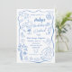 Esta caprichosa tarjeta de invitación de despedida de soltera dibujada a mano presenta un estilo de playa juguetón dibujado a mano vaquera / sirena con cóctel, garabatos temáticos del oeste salvaje. Los intrincados garabatos, caracterizados por líneas onduladas y sinuosas, añaden un toque de singularidad y estilo personal a su invitación. Doble cara, con itinerario de fin de semana en la parte posterior. Esta plantilla incluye texto totalmente editable y paleta de colores. Explore nuestros artículos coordinados disponibles en la tienda para un look coherente y elegante. (c) Ever After Wedding