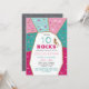 Chicas escalan la invitación a la fiesta de cumpleaños en un verde azulado, rosa y falso purpurina.