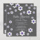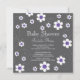 Elegante ducha cuadrada florida, sólo para una niña, con flores de margarita blancas y violetas, colocadas en un fondo gris a la moda, con la espalda a juego. Nuestra moderna y popular invitación a la ducha floral es perfecta para una ducha de bebé. Visita nuestra tienda para encontrar tarjetas de agradecimiento, pegatinas y sellos postales.
