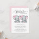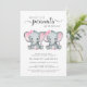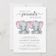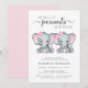 Una tierna chica gemela bebe roció la invitación con "Dos dulces cacahuetes están en camino" escrito en tipografía gris suave y moderna y un elegante guión de batir y dos acuarelas rosas de elefantes bebés. Personalice el nombre de la futura madre y los detalles de la ducha en una simple tipografía gris.