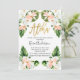 Chica color agua aloha invitación a la ducha bebé. Este diseño presenta varios follaje tropical verde y algunas flores blancas y rosas sobre un fondo blanco. El encabezamiento es un falso texto de caligrafía de Relieve metalizado de oro. Es una manera moderna y fresca de invitar a los huéspedes a una ducha de chica.