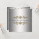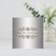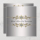 Chica elegante plata y oro Primera invitación a la Santa Comunión. Diseño de rollo floral dorado sobre fondo de color plateado.