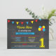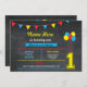 Primaria invitación de cumpleaños a los globos de color, perfecta para un fiesta de primer cumpleaños. Simplemente cambie el texto para que se ajuste a su fiesta. Se incluye la impresión posterior.