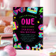 Esta divertida y colorida invitación de cumpleaños incluye diseños retro de los años 80 (gafas de sol, cinta de cassette, teléfono, patines de ruedas, y más). Los colores del neón (rosa magenta, amarillo, verde limón, agua y morado) hacen que esta invitación sea realmente pop. ¡Perfecto para hacer una fiesta de cumpleaños de los 80 para tu niñita! La parte posterior contiene un patrón de cable de teléfono en rosado magenta. El color de fondo y la mayoría de los colores de texto se pueden personalizar, si se desea.