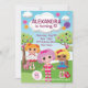 Esta invitación a la fiesta de cumpleaños de las niñas personalizados incluye tres coloridas muñecas rag y texto de personalizable para personalizarla.