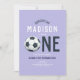 Esta moderna invitación para el primer cumpleaños de un niño incluye un diseño deportivo morado, con una linda pelota de fútbol (fútbol) haciendo el 'ONE', y un patrón de correspondencias en la parte trasera. La invitación puede ser personalizada con el nombre de su chica y otros detalles necesarios para su fiesta.