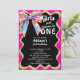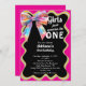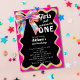 Chicas Sólo quiere ser una invitación retro primer cumpleaños Fiesta negro - Celebra el primer hito de tu niñita con esta divertida y colorida invitación de primer cumpleaños. Presenta un diseño retro de los años 80 con colores de neón brillantes como el rosa cálido magenta, verde azulado, amarillo, naranja y violeta armazón y un arco coqueta holográfico. Perfecto para hacer una fiesta temática de los años 80 de primer cumpleaños o retro glam bow 1ª celebración de cumpleaños. Disponible en formato impreso y digital. Personalizar esta invitación editable de la fiesta de primer cumpleaños para chicas con sus propios detalles del evento.