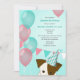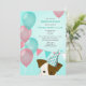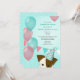Invitación chicas verde azulados globos rosados fiesta de cum