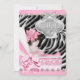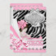 Un cochecito de bebé rosa dulce y una adorable invitación a la ducha de bebé de cebra rosa. Podrá personalizar fácilmente esta elegante invitación a la ducha de bebé rosa de cebra para su evento.