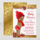 Invitación Chico Afro Rojo Dorado Baby Shower de Navidad