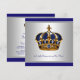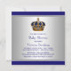 Invitación de baby shower del pequeño príncipe corona dorada y azul plateado.