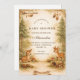 Un diseño acogedor de ducha de bebé de bosque inspirado en una suave aventura forestal. Ilustrado con vegetación rústica, piñas y un encantador detalle de tendedero de ropa de “pequeño cazador”, este diseño de estilo de cuento de hadas se siente cálido, nostálgico y amante de la naturaleza. Perfecto para padres que aman el aire libre, temas de bosque o estética de guardería rústica.
