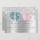 Invitación Chico Chica Gemelos Grises Pies Brillantes Drips B