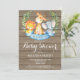 Invitación de Baby Shower a Chico de Animales de la Selva Safari Rustica. Fondo de madera azul y rústica. Muchacho Invitado de Baby Shower. Flor acuarela floral y salir. Para una mayor personalización, haga clic en el botón "Personalizar" y utilice nuestra herramienta de diseño para modificar esta plantilla.