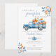 Esta invitación para baby shower elegante cuenta con otoño rústico, hojas de otoño y un camión azul lindo lleno de calabazas. Diseñado por Thisisnotme